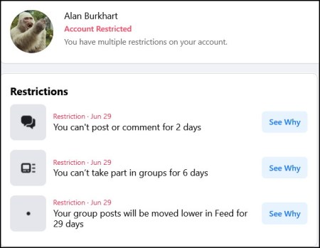 I’ve bitched about Facebook before. I’ve threatened to leave (not that FB would care). I nearly left them last time they restricted me but to be honest I enjoy interacting with my friends there. I “Disagreed” with their decision and also posted a complaint via their feedback option. I doubt anyone will actually see either one. Facebook is too big and too powerful to give a shit what their users think about them. They worry more about equally meddlesome government regulators prosecuting them for allowing “hate speech.” The end result is FB being paranoid to the point of throwing users in Facebook Jail for the silliest of reasons.