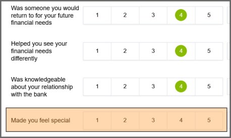 After venting on Walmart I went to my next email and it was from my new bank, wanting to ask me all about my recent experience setting up my new account. I thought what the hell, let’s make’em feel proud. So I was going down the list giving them a 4 (of 5) on just about everything until I got to the pictured question above. What kind of silly-assed question is this? Was the nice lady supposed to give me a hug or something? Pat me on the head and tell me I’m cute? What?